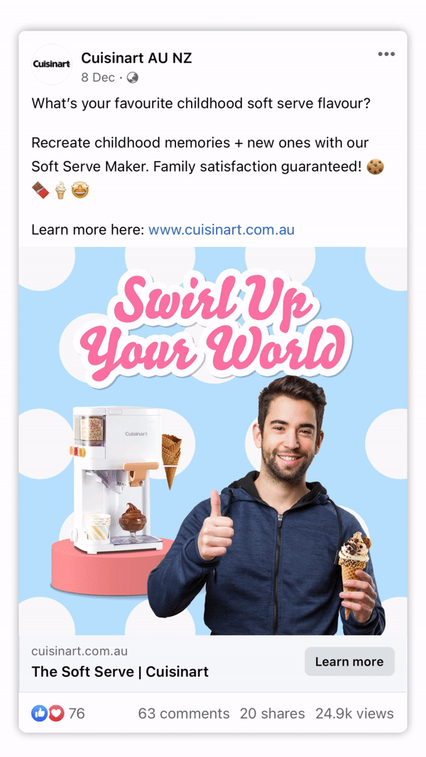 We brought the visuals to life using static images enhanced with 3D swirls and quirky animation, creating a fun and almost magical atmosphere that appeals to families. The campaign also taps into the childhood memories of many Australian millennial parents, evoking nostalgia with a pinstripe background and a color palette reminiscent of classic ice cream vans.