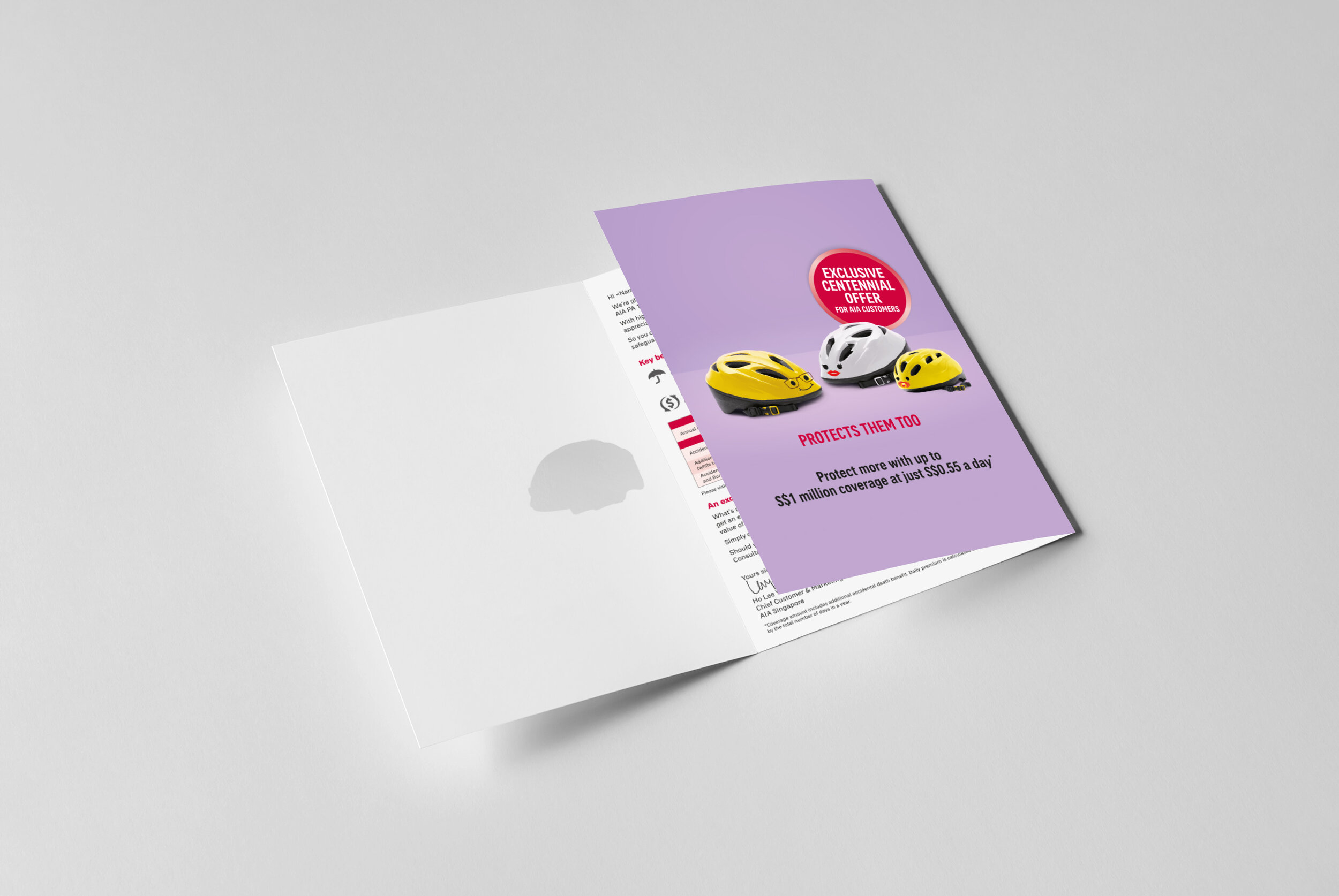 We gave them a heads-up, by featuring their helmets. We featured different protective gear related to accident-prone work or play activities. Which we then visually expanded to play on how when the unexpected happens, it is often the family that has to bear the burden. Which is why they can extend their protection over their family, by financially securing them in the event of the unexpected.